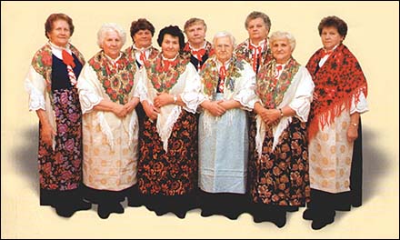Początkowo zespół występował w białych bluzkach i czarnych spódnicach. Z czasem z dotacji gminy i nagród uzupełniano stroje według opisów babć i mam. Najbardziej charakterystycznym elementem książenickiego stroju ludowego jest lajbik zszyty razem z wełnianą kiecką w kolorze chabrowym, z przodu związany szlajfką. Kiecka przykryta jest zopaską z brokatu lub atłasu, jednokolorową lub w kwieciste wzory, zawiązana z tyłu na kokardę. Górną część ciała okrywa biały, płócienny koszulek z wąską kryzą marszczoną pod szyją i z bufiastymi rękawami sięgającymi do łokcia, zakończonymi haftowaną koronką. Wełniana chusta szalyjka występuje w różnych kolorach: czerwonym, białym i niebieskim, zawsze w kwiaty i z frędzlami na obrzeżach. Czasem noszona na głowie, wtedy tworzy żurok.